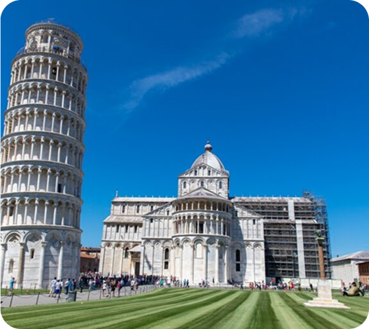 Desayuno en hotel y visita de esta estupenda ciudad donde el genio italiano se manifiesta en todo su esplendor y pureza. El centro de la ciudad, junto con el Campanario, el Baptisterio y la Catedral, constituyen un conjunto extraordinario de mármoles blancos, verdes y rosados, en los que se aprecia la transición del arte florentino medieval al del Renacimiento. Visita al Duomo de Santa María del Fiore, símbolo de la riqueza y del poder de Florencia durante los S. XIII y XIV, con la Cúpula del Brunelleschi en contraste con la esbelta silueta del Campanario proyectado y comenzado a construir por Giotto, el Baptisterio, construcción románica famosa por sus Puertas de Bronce (entre ellas las Puertas del Paraíso, así nombrada por Miguel Ángel), Piazza della Signoria, el Palacio Viejo, edificio gótico de aspecto austero, y por fin la Iglesia de la Santa Croce que se abre a una de las plazas más antiguas de la ciudad. Almuerzo en un típico restaurante toscano en plena Plaza Santa Croce. Tarde libre, oportunidad de efectuarla visita de Pisa opcional. Pequeña ciudad que ha logrado conservar numerosas pruebas de su pasada grandeza de antigua República Marinera y de Ciudad Universitaria. Visita externa de la Plaza del Campo, conocida también como «Campo de los Milagros», donde se encuentran el Duomo, la Torre inclinada y el Baptisterio. Alojamiento.